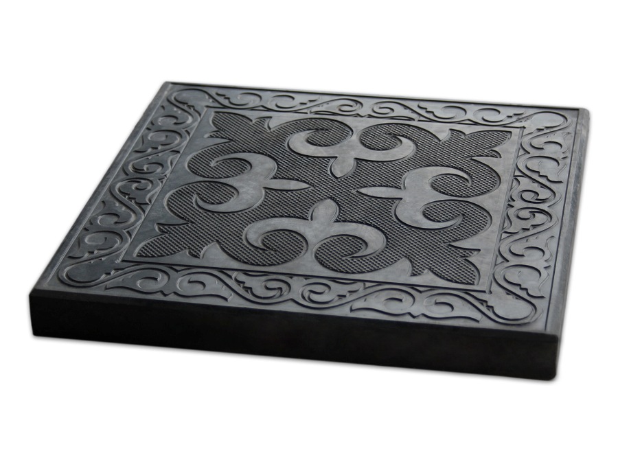 На лицевой поверхности формы изображен узор (азия, альтаир). Форма произведена методом литья под давлением с ребрами жесткости из специального пластика в Российской Федерации в городе Нижнем Новгороде и предназначена для производства по технологии мрамор из бетона.
