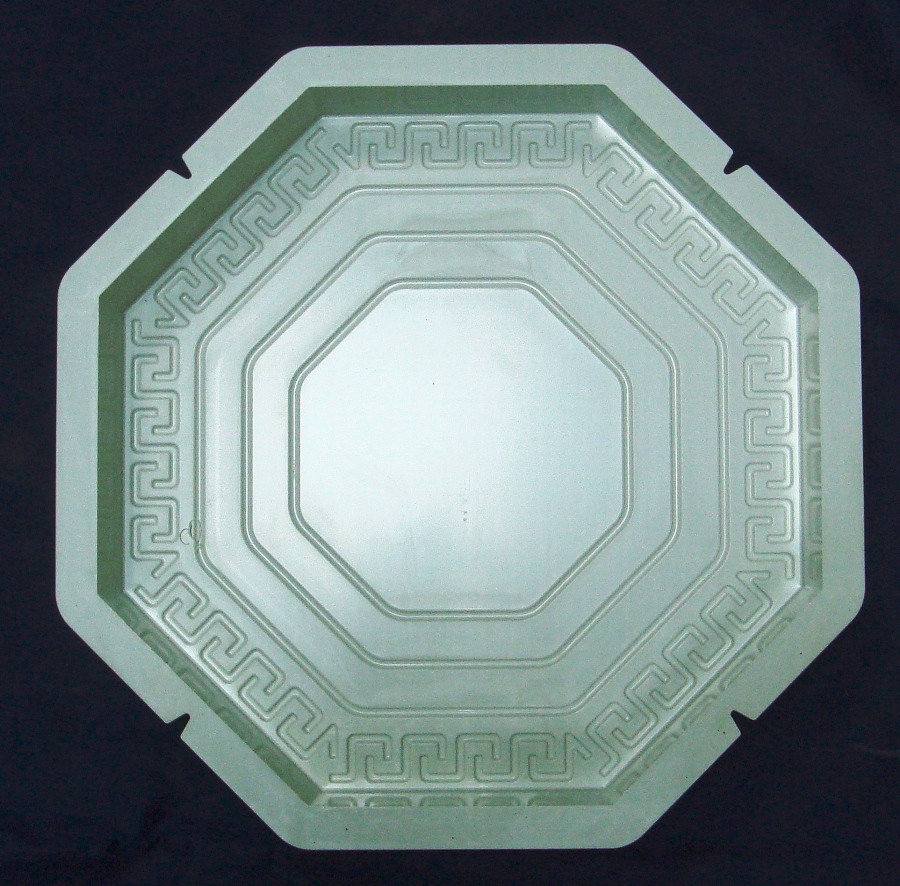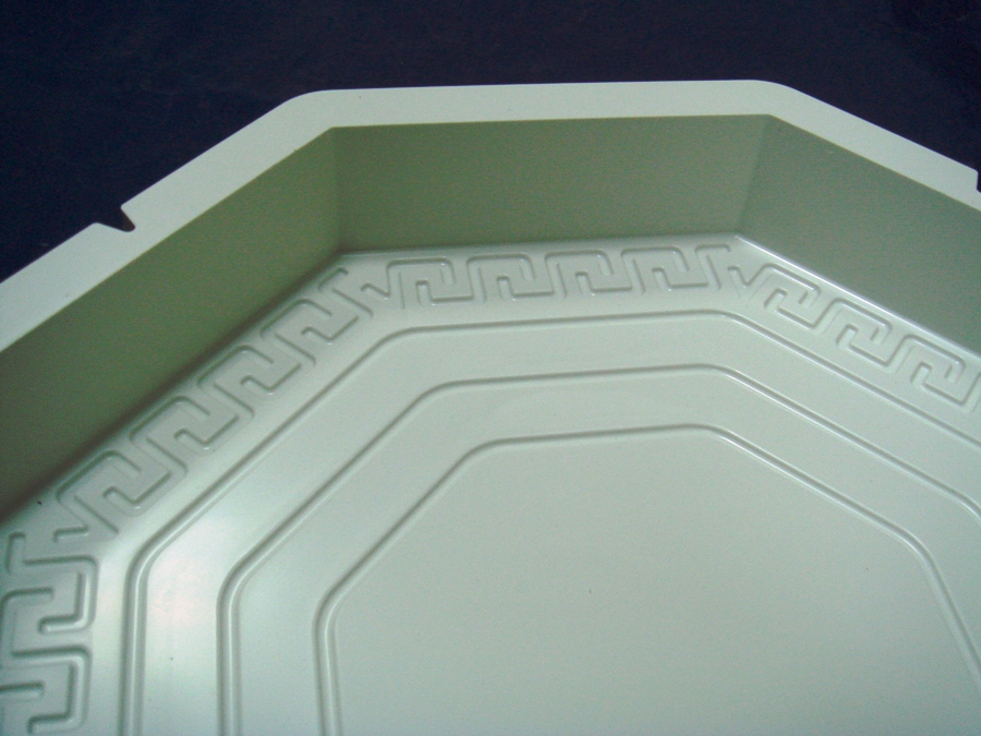 На лицевой стороне формы находится орнамент. Комплектуются восьмигранники с квадратами "Греческий орнамент" 120х120х40 мм. Плитки могут чередоваться с восьмигранниками "Малая Греция".