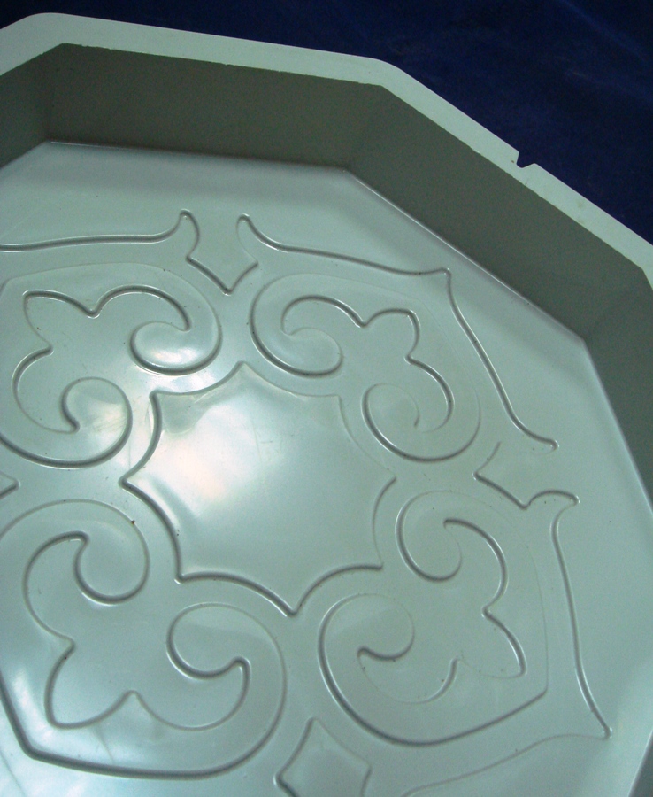 На лицевой стороне формы изображен восточный орнамент. Комплектуются восьмигранники с квадратами "Греческий орнамент" 120 х 120 х 40 мм. По своим размерам может сочетаться с восьмигранниками "Греция малая" и "Конь".