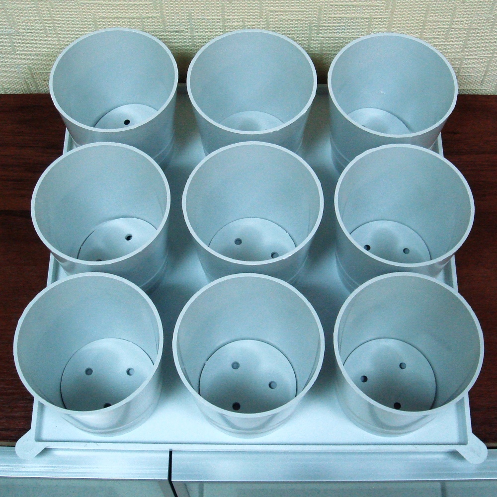 Набор из 9 пластиковых стаканов для выращивания растений дома или на даче. Этот набор комплектуется поддоном, который позволяет удобно хранить горшки и перемещать их при необходимости. Поддон также обеспечивает дополнительную защиту от протеканий во время полива рассады. Объём горшка 0,5 литра.